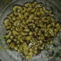 - Dans quatre saladiers, je verse 100 g de noix de cajou, auquel j’ajoute une cuillère à soupe d’huile d’olive et une de fleur de sel dans chaque contenant. On laisse le premier, tel quel, car ça sera nature. Pour le deuxième Garrigue, j’ajoute une cuillère à soupe de feuille de thym séchées et j’amalgame. Pour le troisième indien, j’ajoute 1 cuillère à soupe rase de curry balti et j’amalgame. Pour le dernier oriental j’ajoute une cuillère à soupe rase de ras el hanout et j’amalgame.