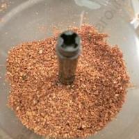 - J’ajoute ces morceaux dans un bol mixeur et je mixe le tout en plusieurs fois. On obtient rapidement le pralin, la préparation en poudre. Si je mixe plus longtemps, j’obtiendrais du praliné. Le pralin se conserve très bien, dans un pot hermétique pendant plusieurs semaines.