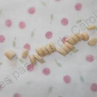 - Je fleure le plan de travail avec du sucre glace pour limiter l'adhérence. Je prélève un peu de pâte d'amande colorée de mon choix et je l’étale. Je mode la pâte d'amande en bâtonnet d'environ 14 cm de long et 1 cm d'épaisseur, puis je détaille en 8 parts égales.