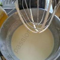 - Je verse la farine, le sucre et le sel dans un saladier ou dans le bol du robot-pâtissier, puis, j’ajoute le lait petit à petit en remuant constamment. J’ajoute le beurre fondu, le parfum et les œufs préalablement battu, je mélange bien. Je réserve la pâte au frigo pendant 45 min.